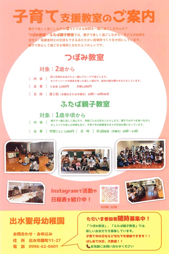 出水聖母幼稚園は、下記のとおり公開保育を行いますので、お知らせいたします。